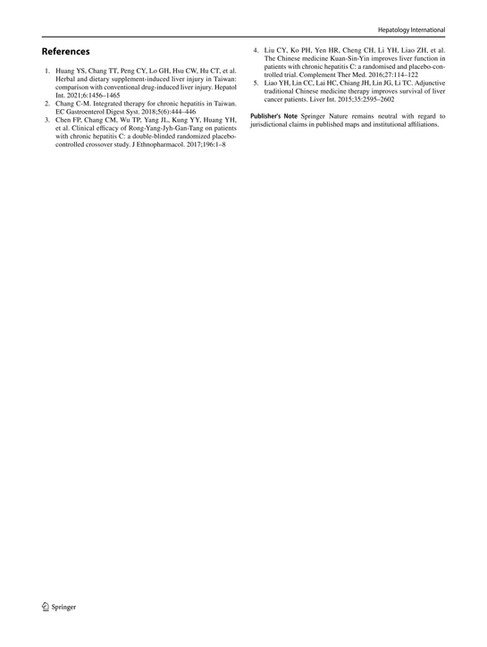 REF#3: Liu CY, Ko PH, Yen HR, et al. The Chinese medicine Kuan-Sin-Yin improves liver function in patients with chronic hepatitis C: A randomised and placebo-controlled trial. Complement Ther Med. 2016.